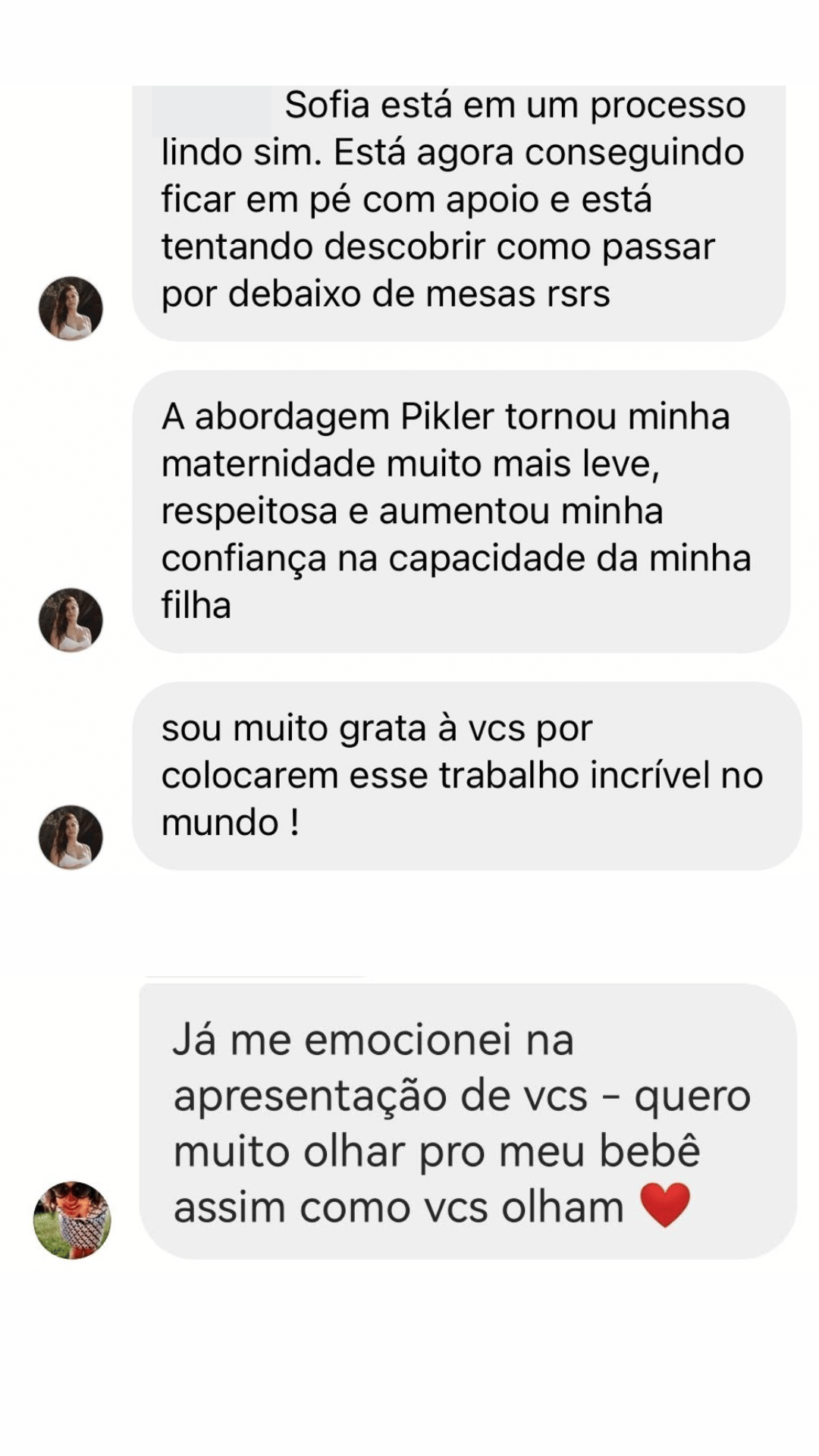 Aqui você pode se situar no curso, entender como tudo funciona, entrar nos canais de comunidade e descobrir a nossa história com a abordagem Pikler, como mães e educadoras. Vai preencher um formulário para a gente começar a te conhecer e pegar na sua mão, para andarmos juntas!